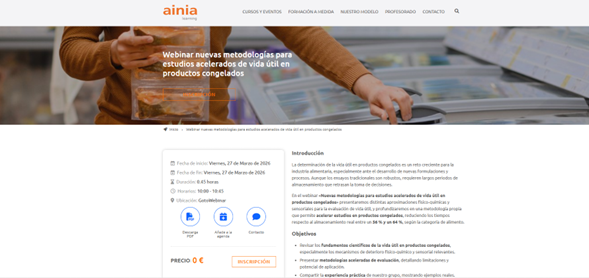 En el webinar «Nuevas metodologías para estudios acelerados de vida útil en productos congelados» presentaremos distintas aproximaciones físico‑químicas y sensoriales para la evaluación de vida útil, y profundizaremos en una metodología propia que permite acelerar estudios en productos congelados, reduciendo los tiempos respecto al almacenamiento real entre un 56 % y un 64 %, según la categoría de alimento.