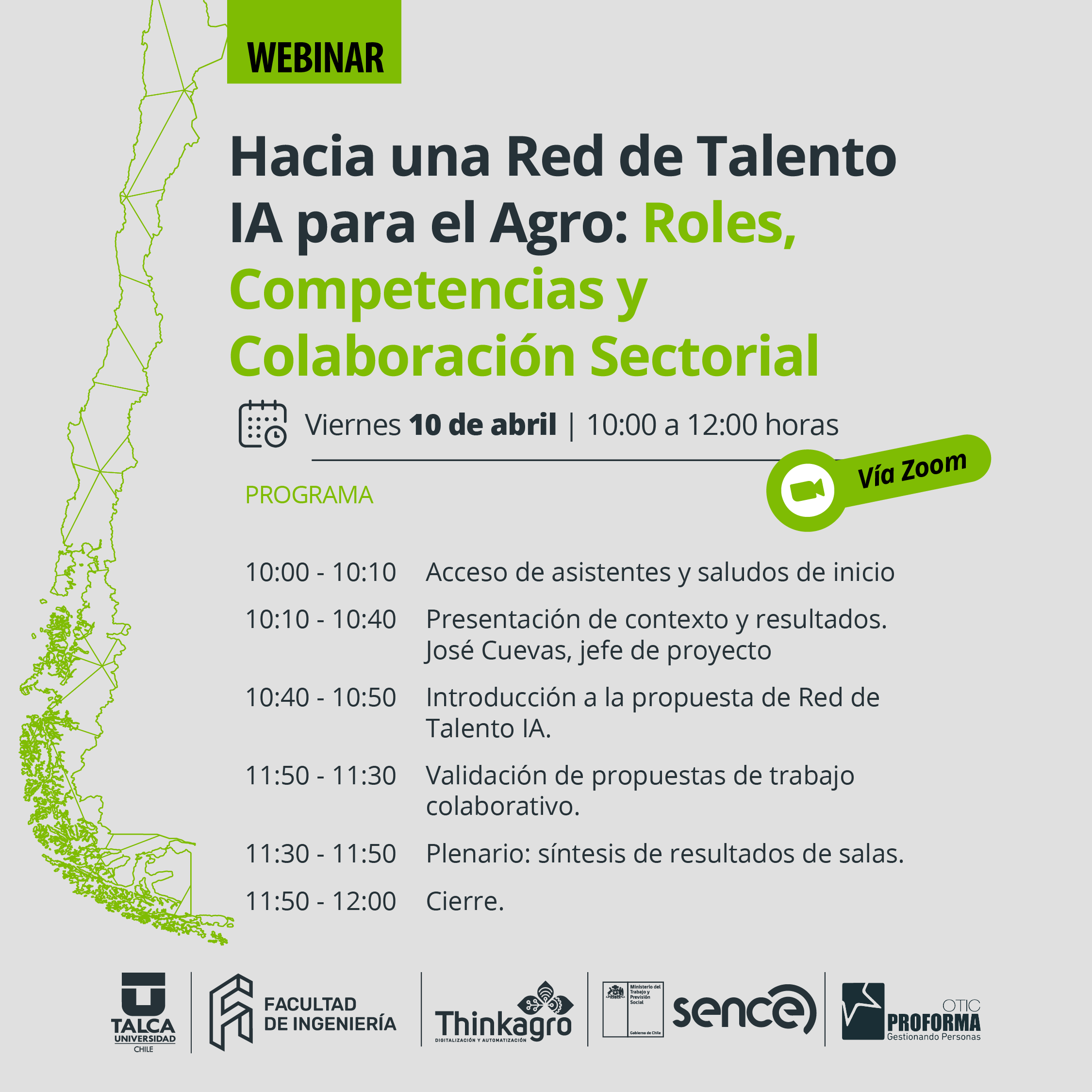 Actividad efectuada en el marco del estudio "Identificación de nuevos roles ocupacionales emergentes en IA para la Agroindustria y el Sector Frutícola: estrategias de formación para el desarrollo de competencias clave" ejecutado por el Centro de Extensionismo Tecnológico, Thinkagro de la Facultad de Ingeniería de la Universidad de Talca iniciativa del Organismo Técnico Intermedio para Capacitación (OTIC) PROFORMA
