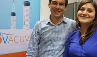 Ángela Hidalgo y Nicolás Gutiérrez, candidatos a doctores en Biotecnología Molecular, trabajan para desarrollar aplicaciones y hace poco ganaron relevante fondo de Corfo para progresar en proyecto enfocado a favorecer la industria porcina.